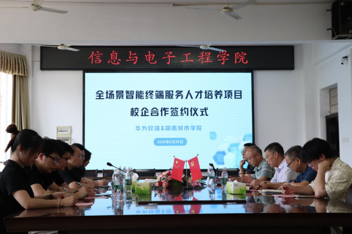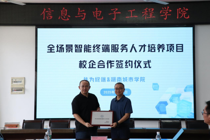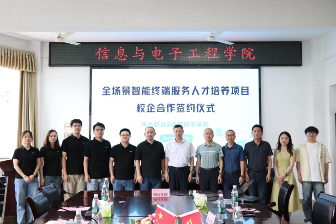 为进一步深化产教融合,培养适应产业发展的复合型人才,529日,学院隆重举行“华为全场景智能终端服务人才培养项目签约授牌仪式。学校党委委员、纪委书记陈列尊,学院党委书记邓中日、院长蒋冬初、党委副书记廖铁,湖南终端业务部人力资源部总经理邬世贵、湖南终端服务部长白国栋等一行人参加。本次授牌标志着学院与华为终端有限公司的战略合作正式迈入实质阶段,将为区域智能终端产业发展注入新动能。