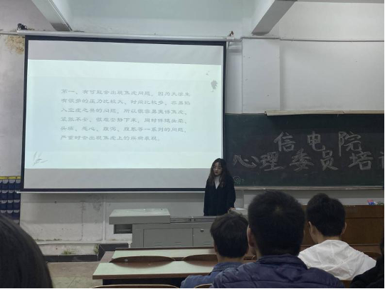 培训会上廖铁书记、吴湘华书记提出对心理委员的要求,每个心理委员应当多观察多关心身边同学。无论是感情问题还是生活问题,都应该及时向老师和书记汇报,以免发生不可逆转的事情。由于部分同学不敢向老师请求帮助,所以心理委员应该与班级的寝室长建立群聊,和寝室长沟通,从而更好地帮助班上的同学并且能及时反映信息。