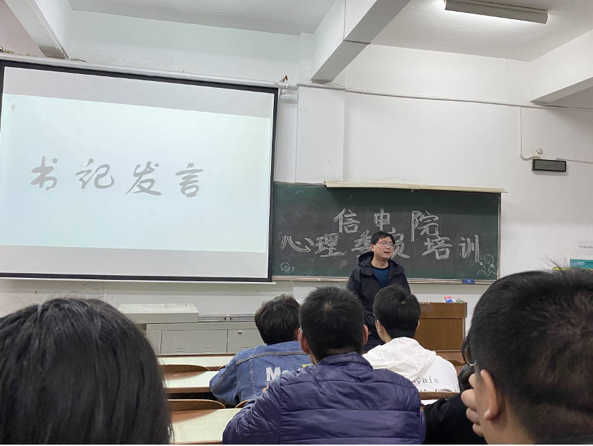 出席本次培训大会的有388vip太阳集团官网,太阳集团党委副书记廖铁书记、吴湘华书记、辅导员马楠老师、心理部成员以及各班心理委员。