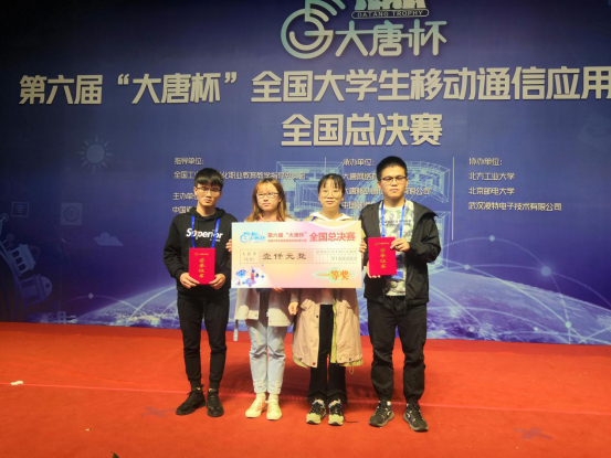 10月19日至20日,第六届“大唐杯”全国大学生移动通信应用创新大赛全国总决赛在北京举行,388vip太阳集团官网文兵、赵政春老师指导的队伍(参赛学生:欧阳从江、谌民迪、徐金玉、方欣)以优异的成绩荣获全国总决赛一等奖。