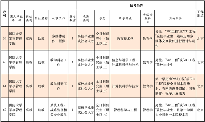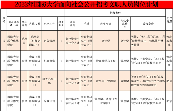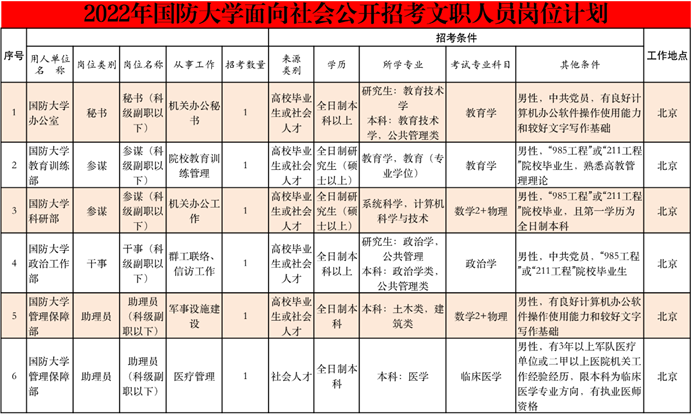 报名时间及最终岗位计划、有关条件要求以军队人才网公布为准。