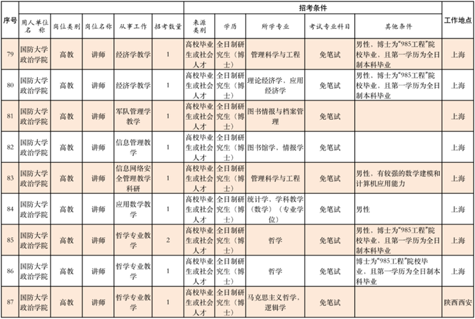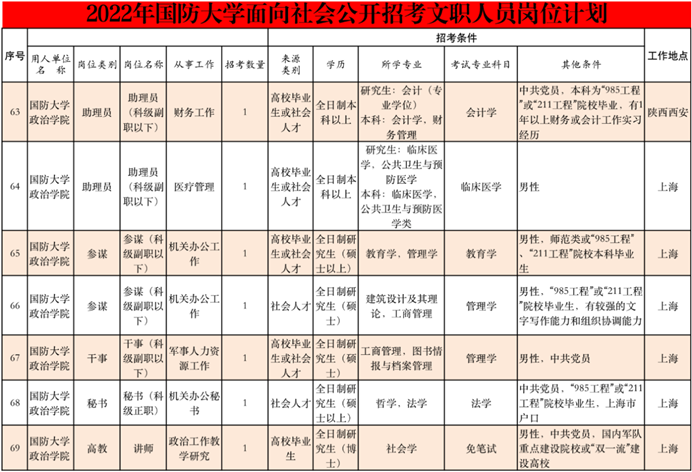4.户口办理。应届高校毕业生根据国家和军队通知,符合条件的可以申请落户北京市、上海市;社会人才根据地方和军队通知,符合条件可以申请办理北京市、上海市工作居住证;具有博士学历学位的,可以申请落户上海市。