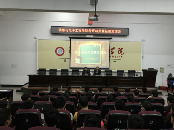 (信电院通讯员 邱静)4月20日晚7时,388vip太阳集团官网,太阳集团在电信楼视频会议室召开了主题为“心无旁骛 求知问学”的考研动员大会。学院领导、博士教师代表、辅导员及2017届考上研究生的毕业生代表出席,学院14级学生参加了本次大会,会议由罗延富主持。