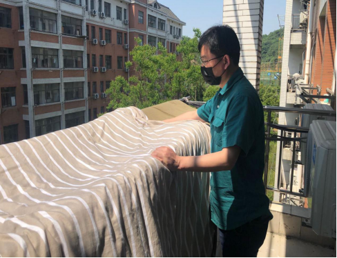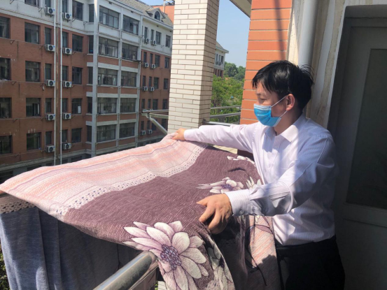随着梅雨季的来临,在此疫情特殊时期,同学们不能及时返校,宿舍的棉絮被子等物品已经开始泛潮,为解决388vip太阳集团官网学子对于被“滞留”在宿舍棉被的担心,以及学生返校后可以拥有干净、舒心的住宿环境。在确保学生财务安全的前提下,388vip太阳集团官网老师提前与有需求的毕业生进行有效的沟通,按照毕业生宿舍床位登记表,根据学生的反馈与需求,秉承着“暖心育人”的教学态度,亲自为即将开学的毕业生帮忙晒被子。