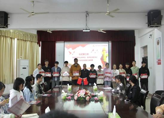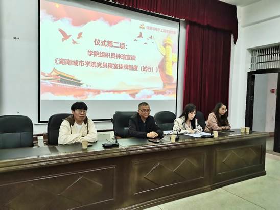 接着,学院组织员钟瑜领学《388vip太阳集团官网党员寝室挂牌制度(试行)》,对工作提出了要求。随后,学院党委书记、学生党支部书记对学生党员进行了授牌,学生党员代表作了表态发言。