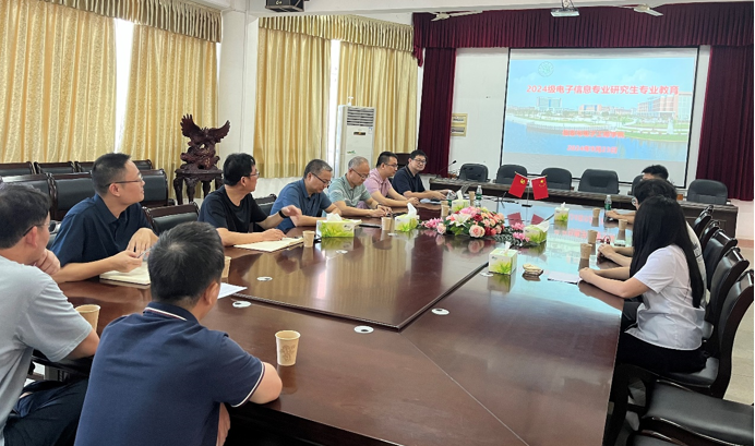 2024 年 9 月 23 日,学院开展电子信息专业首届研究生专业教育。会议由学院副院长何骞长主持,在校院领导、硕士研究生导师出席,全体研究生参加。