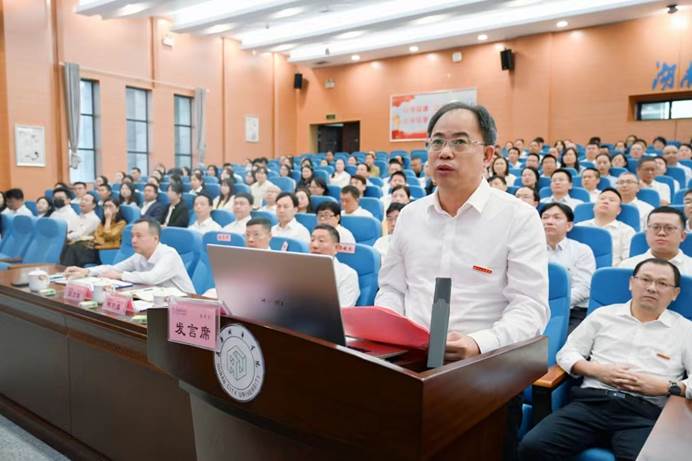 张大玉对专家组线上评估主要任务、专家组线上和入校评估工作安排和专家组工作纪律要求进行了部署和说明。他对新一轮审核评估的精髓要义进行了阐释:一是充分认识新一轮审核评估的新变化。二是深刻理解审核评估“质量共同体”理念。三是全面做好湖南省特色项目和指标的审查。张大玉表示,希望学校以“平常心、正常态”对待评估,以“学习心、开放态”参与评估,客观、准确、真实地提供评估材料,与专家一起分析发展中的困难与问题,探讨解决问题的途径与方法,为学校培养实基础、重应用、有特色、高素质的应用型人才,为学校高质量发展贡献智慧与力量。